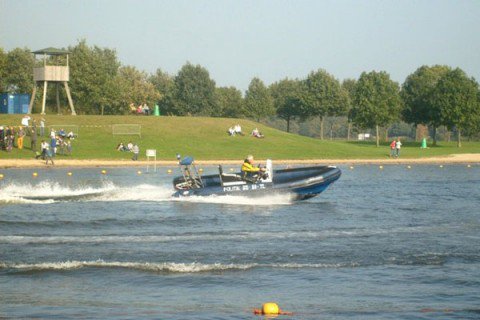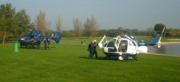 De dag speelde zich niet alleen op en om het water af. Ook de lucht bood diverse keren een mooi schouwspel, waarvoor de piloten van de politiehelikopters tekenden. Zij zorgden voor een extra dimensie. Uiteraard werd er ook geland bij de Wijthmenerplas en konden belangstellenden de heli van nabij bekijken.