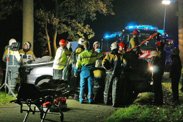 De man verklaarde van de weg te zijn geraakt omdat er een dier overstak. Hij is met behulp van de brandweer uit zijn auto gehaald en met rugklachten per ambulance naar het ziekenhuis vervoerd. De auto is afgesleept. In verband met de schade aan het voertuig heeft de politie het kentekenbewijs van de auto ingenomen.
