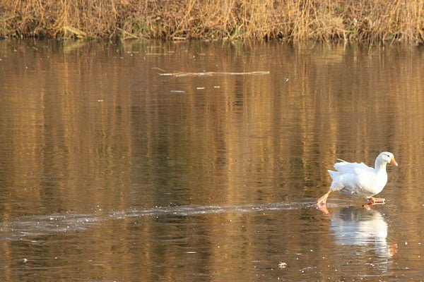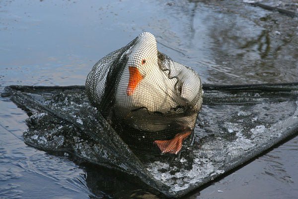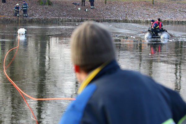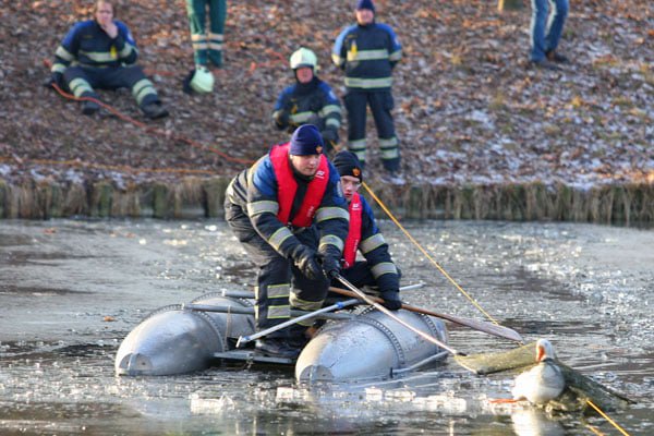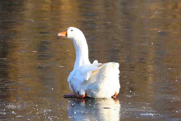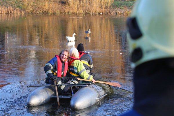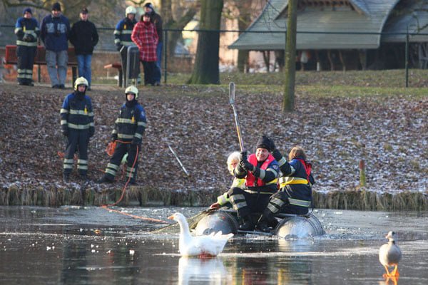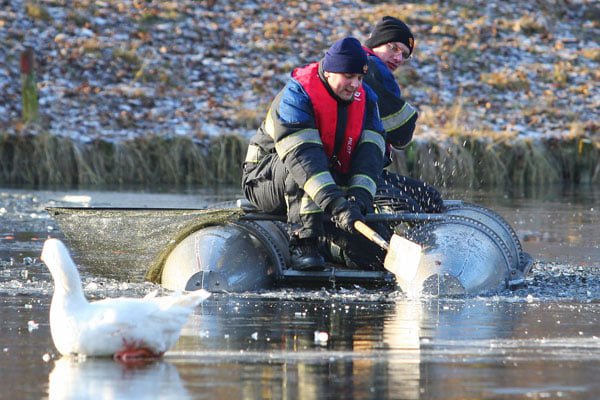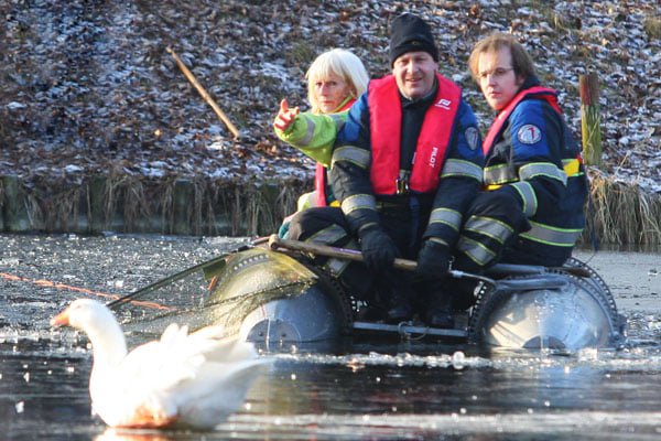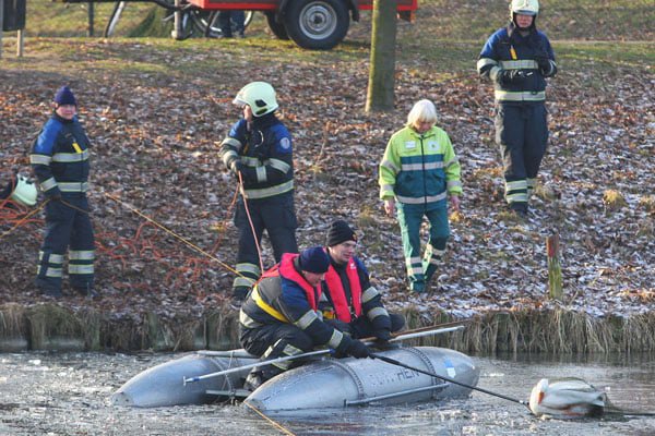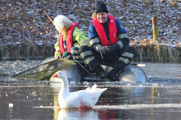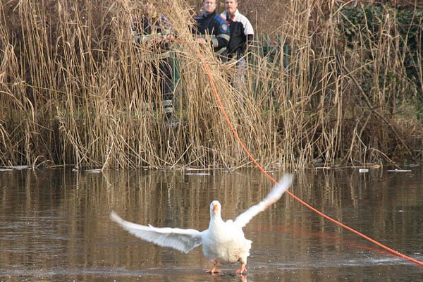 Brandweer haalt gewonde gans van het ijs
