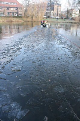 Rond elf uur kwam bij de brandweer melding binnen dat een gans vast zat op het ijs van de Grote Gracht achter het Stedelijk Dalton College. Met een vlot probeerde de brandweer de vogel te bereiken. Het ijs bemoeilijkte de reddingsoperatie. Toen de brandweermannen op het vlot dichterbij kwamen kwam er opeens beweging in de gans. Vastgevroren op het ijs zat het dier dus niet, maar volgens een medewerkster van de dierenambulance was er iets niet in orde. Daarom werd de reddingsactie doorgezet. Met behulp van een touw werd de gans richting de brandweermannen op het vlot gesleept. Met een groot schepnet werd de gans gevangen. Nader onderzoek van de medewerkers van de dierenambulance wees uit de gans meerdere grote wonden had onder zijn vleugel. De dierambulance heeft het dier meegenomen naar een vogelopvang in Halle. De reddingsoperatie heeft in totaal ruim twee uur geduurd.