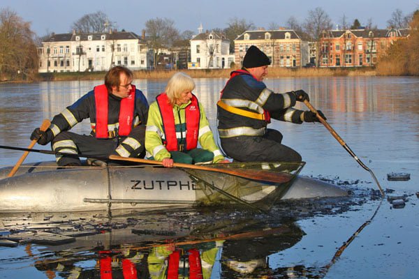 ZUTPHEN – Nadat zaterdag nog een meeuw werd gered, had de brandweer zondag de schone taak om een gewonde gans van het ijs van de Grote Gracht langs de Isendoornstraat in Zutphen te halen.
