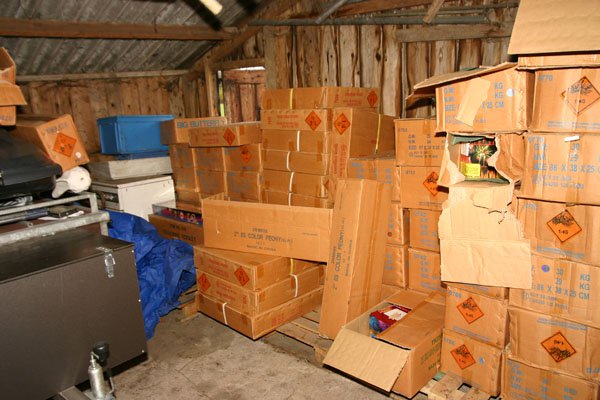 VAASSEN – Het Regionaal Vuurwerkteam van de politie heeft in een schuur bij een woning in het buitengebied van Vaassen, ongeveer 1500 kg illegaal vuurwerk in beslag genomen. Daarnaast trof men ruim 160 sloffen “merkvervalste” sigaretten, een vuurwerkwapen met knalpatronen, een ploertendoder aan.