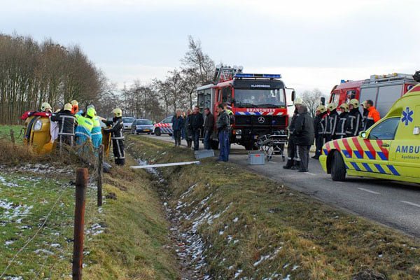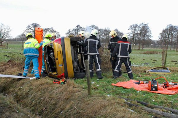 Auto over de kop Klarenbeek|foto Pim Velthuizen/PVFotografie.nl