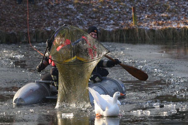 De gans werd na veel moeite door de brandweer van het ijs gehaald. De dierenambulance bracht de gans naar een vogelopvang. Daar werd geconstateerd dat de vogel was beschoten. De kogel bleek nog in het dier te zitten. Ondanks de inspanningen van de medewerkers van de vogelopvang is de gans aan zijn verwondingen overleden.