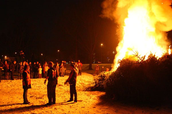 De bomen konden vanaf half zeven worden ingeleverd. Kinderen hadden hiervoor een fiks aantal kerstsparretjes verzameld. En ze brandden als een tierelier, zo bleek toen om zeven uur de fik in de brandstapels ging. Voor de kinderen leverde de verbranding ook nog eens geld op. Zeker voor hen die erin slaagden om zelfs tien bomen of meer aan te slepen. Voor de uitgekeerde 50 eurocent per dennetje leverde dat toch zomaar vijf euro of meer op.