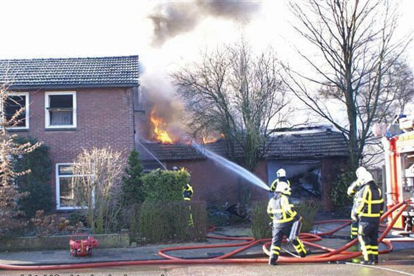 De brand werd rond tien voor half elf opgemerkt. De garage met daarin een auto, motorfiets en een aantal gasflessen stond volledig in brand. De brandweer kon niet voorkomen dat de garage geheel uitbrandde, wel kon de aangrenzende woning worden gered. Deze woning heeft als gevolg van de brand flinke rookschade opgelopen. De brand is vermoedelijk ontstaan tijdens werkzaamheden in de schuur.