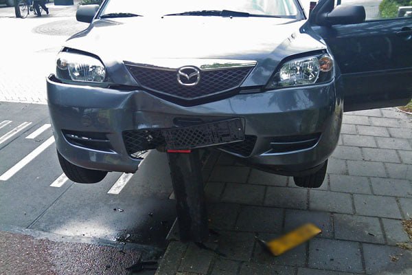 Het ongeval gebeurde rond kwart over één. Vermoedelijk raakte de bestuurder onwel en botste vervolgens op het paaltje. Een ambulance bracht de man naar het ziekenhuis. De auto is afgesleept.