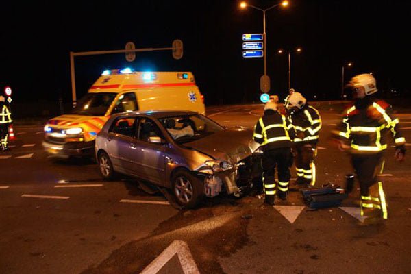 Het ongeval gebeurde rond vijf over half tien op de met verkeerslichten beveiligde kruising. De vrouw kwam op de kruising in botsing met de personenauto van een ouder echtpaar. Het ouder echtpaar heeft vermoedelijk rood licht genegeerd. De vrouw raakte gewond en werd met onbekende verwondingen per ambulance naar het ziekenhuis overgebracht. Het ouder echtpaar bleef ongedeerd. De politie heeft een onderzoek ingesteld naar de toedracht van het ongeval.