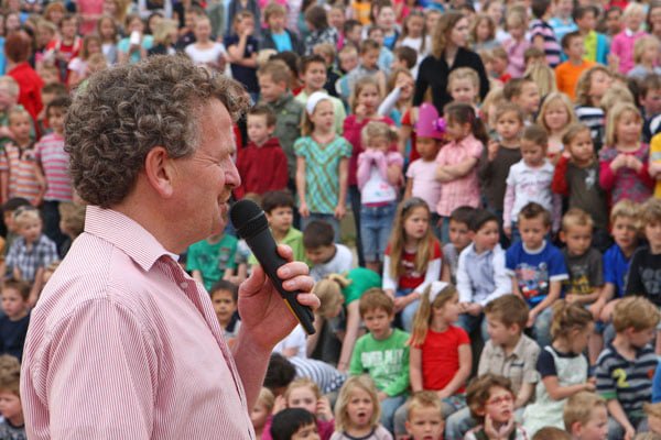 Zeven kilometer straatwerk in de wijk Leesten werd door de groepen 1 tot en met 8 versierd. Het oude record, 6.6 kilometer, van een school in Slowakije werd daardoor ruimschoots verbroken. De Lea Dasberg bestaat vandaag precies tien jaar. Naast dat de kinderen zich nu wereldkampioenen kunnen noemen kregen ze ook nog allerlei cadeautjes. Directeur Han Slegt is reuze trots op zijn school en leerlingen.