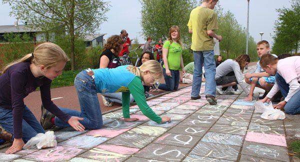 Zutphense school verbeterd wereldrecord stoepkrijten