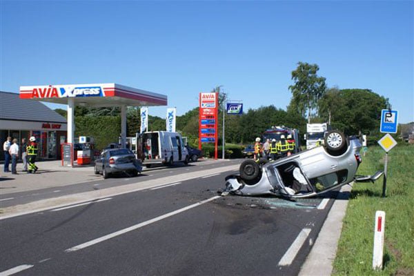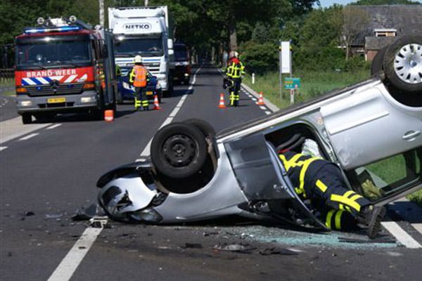 De aanrijding werd omstreeks 09.50 uur gemeld. Uit een eerste onderzoek is gebleken dat ter hoogte van een benzinestation een automobilist stond voorgesorteerd. Een achterop komende auto, bestuurd door een 73-jarige vrouw uit Sinderen heeft dit kennelijk te laat gezien. Bij de aanrijding die volgde vloog haar auto over de kop. Beide bestuurders zijn met ondermeer hoofdletsel per ambulance naar het ziekenhuis vervoerd. De weg is geruime tijd afgesloten gewest voor de hulpverlening, het politieonderzoek en de berging van de voertuigen.