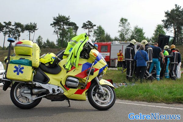 Foto Pim Velthuizen/PVFotografie.nlUDDEL – Bij een aanrijding onder aan de afrit van de A1 op de Kootwijkerweg in Uddel zijn donderdagochtend 21 mei vier personen gewond geraakt.