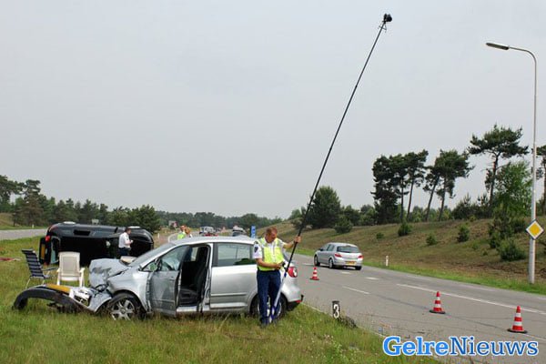 Het ongeval vond rond 09:45 uur plaats en is vermoedelijk ontstaan doordat een 71-jarige automobilist uit Markelo die vanaf de afrit van de A1 de Kootwijkerweg op wilde draaien, geen voorrang verleende aan een 52-jarige automobilist uit Nieuwkoop, die op de Kootwijkerweg reed. Het gevolg was een aanrijding waarbij de auto van de 52-jarige automobilist over de kop sloeg. Zowel de 71-jarige bestuurder als een 73-jarige vrouw uit Markelo, die als passagier in de auto zat, zijn overgebracht naar het ziekenhuis. De andere Markelose passagier (66) raakte licht gewond aan haar knie en hand, zij werd niet naar het ziekenhuis vervoerd.