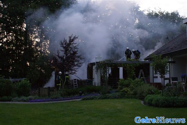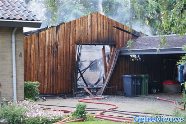 Foto 112Achterhoek-Nieuws.nlHENGELO (G) – Een uitslaande brand aan de Berendschotstraat in Hengelo heeft op donderdagochtend 4 juni de schuur van een woning in de as gelegd.
