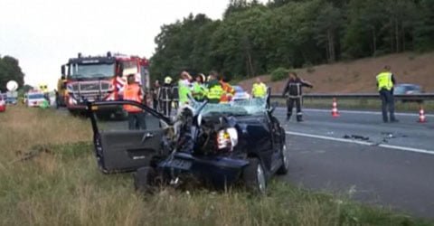 Een vrachtwagenchauffeur remde af voor de file van het eerdere ongeval. Een personenauto die daar achter reed remde ook af. Een achteropkomende chauffeur van een kleinere vrachtwagen had dat te laat in de gaten en botste op de personenauto. De auto kwam tussen de twee vrachtwagens klem te zitten. Drie inzittenden van de auto raakten gewond, één van hen raakte zwaar gewond. De slachtoffers zijn inmiddels naar ziekenhuizen overgebracht, aldus de politie.