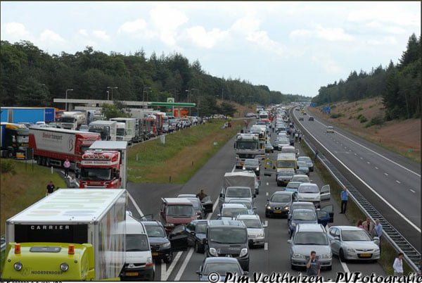De weg tussen Amersfoort en Apeldoorn is nog afgesloten. In de tegenovergestelde richting wordt het verkeer over de vluchtstrook geleid. Rond vijf uur stond er in beide richtingen zo’n 15 kilometer file. De ANWB adviseert automobilisten met klem een andere route te kiezen.