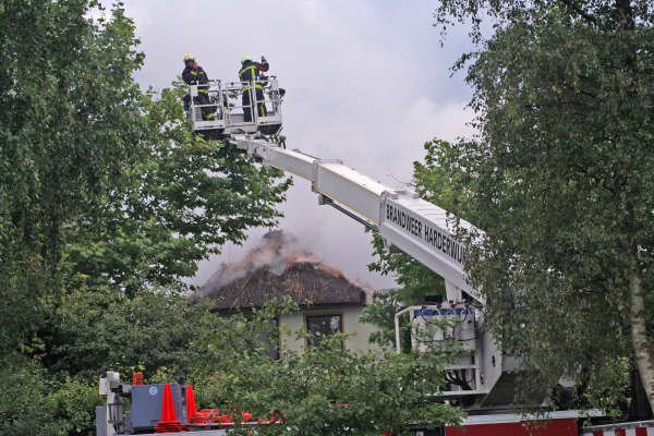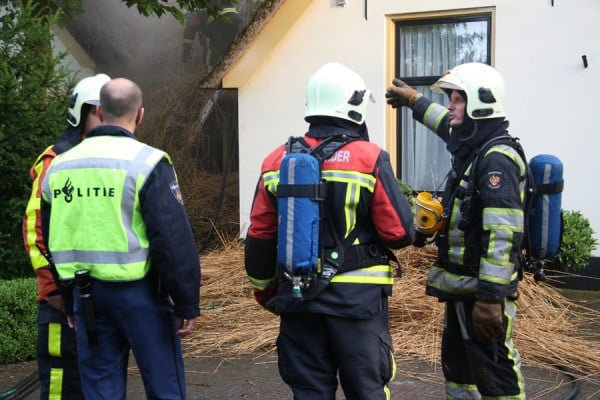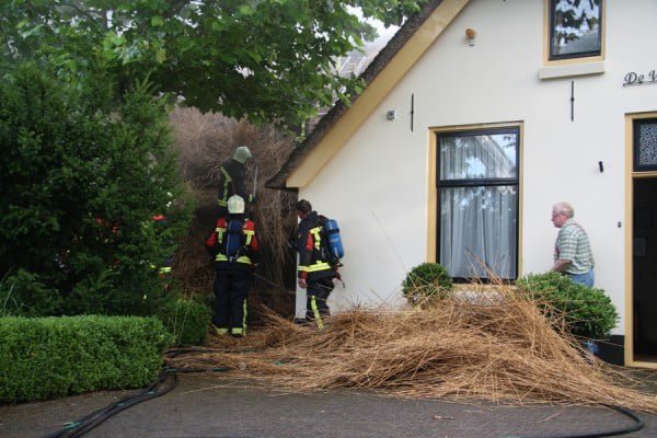 De oorzaak is blikseminslag. Door de klap vielen stroom, telefoon en televisie uit, waarna de brand uitbrak. De bewoners kwamen met de schrik vrij. De schade is enorm.