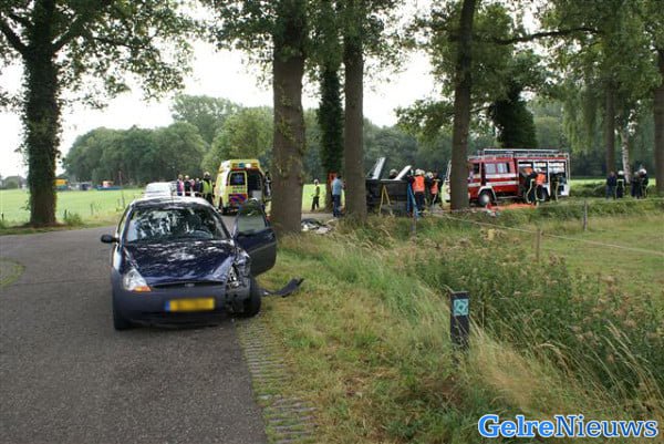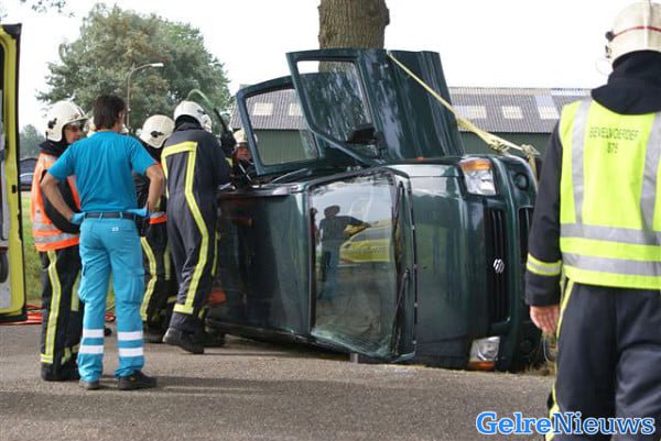 De aanrijding gebeurde omstreeks 10.30 uur. De auto van een 81-jarige inwoner uit Hengelo (Gld) kwam in botsing met de auto van en 44-jarige plaatsgenote. Kennelijk had de vrouw de auto van het echtpaar niet opgemerkt terwijl zij wel voorrang had moeten verlenen. Door de aanrijding sloeg de auto van het oudere echtpaar over de kop. Beide inzittenden zijn door de brandweer uit haar auto bevrijd en de vrouw is per ambulance naar het ziekenhuis vervoerd. Zij is opgenomen, maar het letsel is bij de politie niet bekend