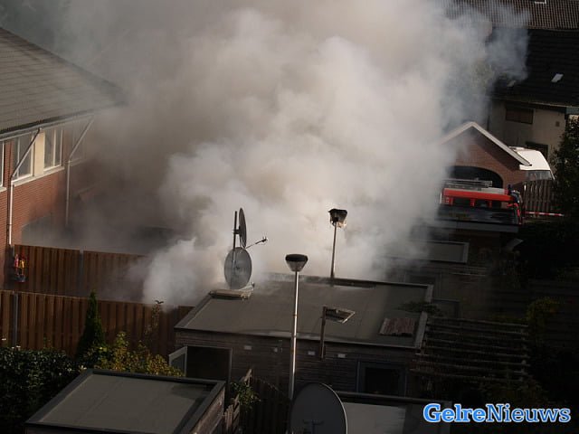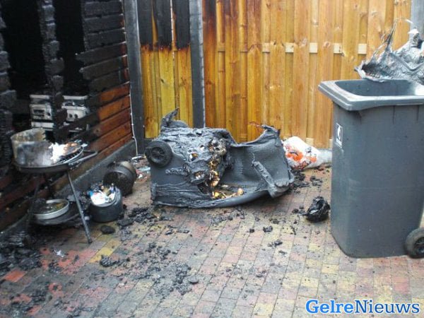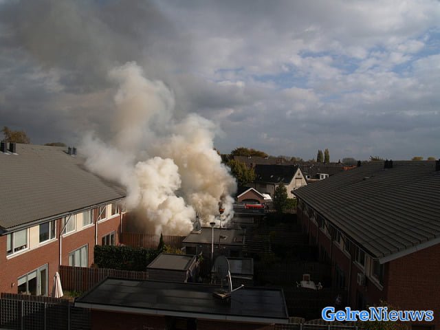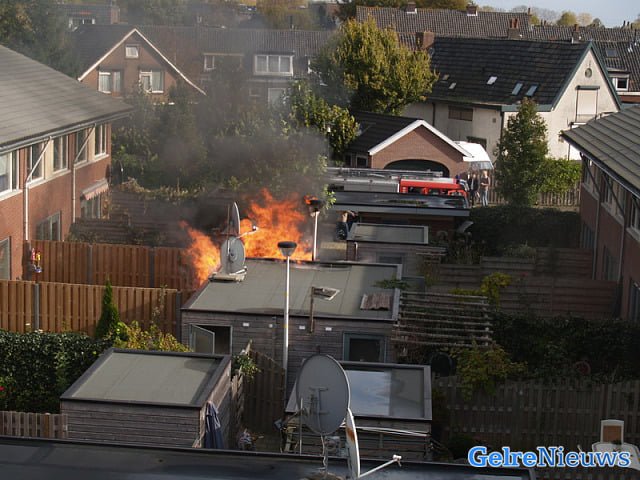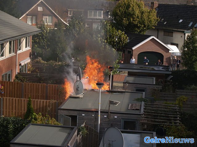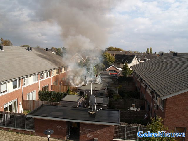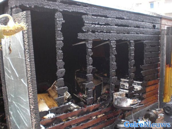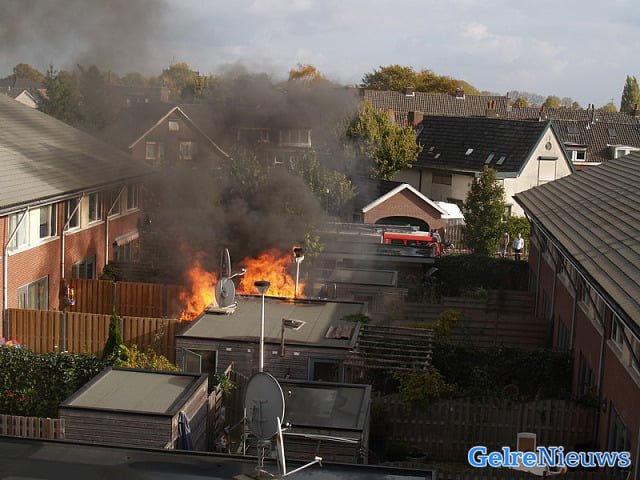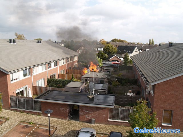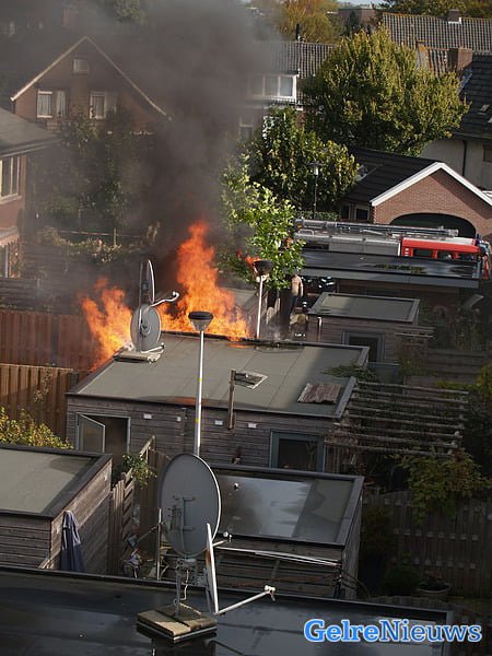 De brand werd even voor half twee bij de brandweer gemeld. Bij aankomst van de eerste bluswagen sloegen de vlammen al hoog boven de houten schuurtjes uit. Het vuur was snel onder controle. Desondanks is de schuur en de complete inboedel volledig verwoest. De schuur van de buurman kwam er al niet veel beter vanaf. De oorzaak van de brand is vermoedelijk een oververhitte frituurpan.