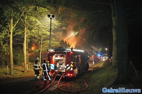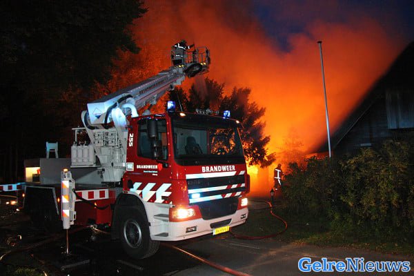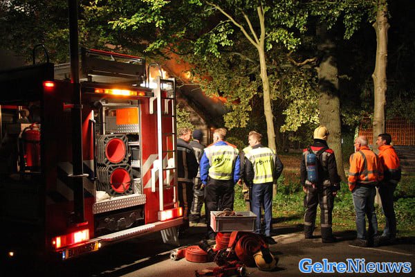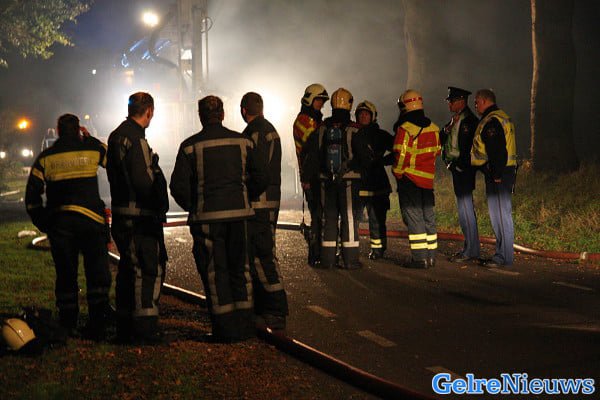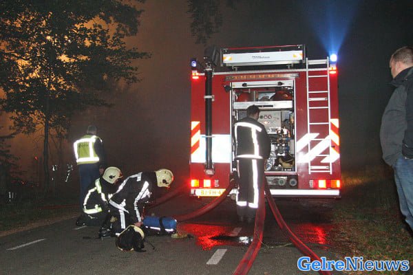 De brandweer had moeite om aan voldoende bluswater te komen. De brandweer- wagens reden af en aan om water naar de brand te brengen. Vijf brandweerkorpsen werden ingezet.
