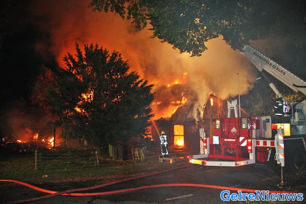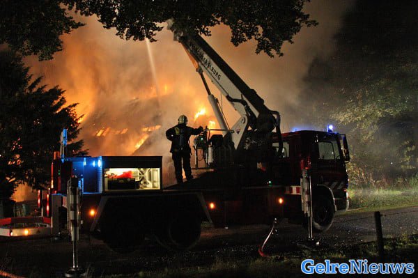 Dat lukte niet. De afstand tussen schuur en woonboerderij was daarvoor te klein, slechts een paar meter. Het rieten dak van de boerderij vatte vlam. Het vuur greep zo snel om zich heen dat bewoners en brandweerlieden nauwelijks de kans kregen nog wat uit de woning te redden. Het werd al snel te gevaarlijk.