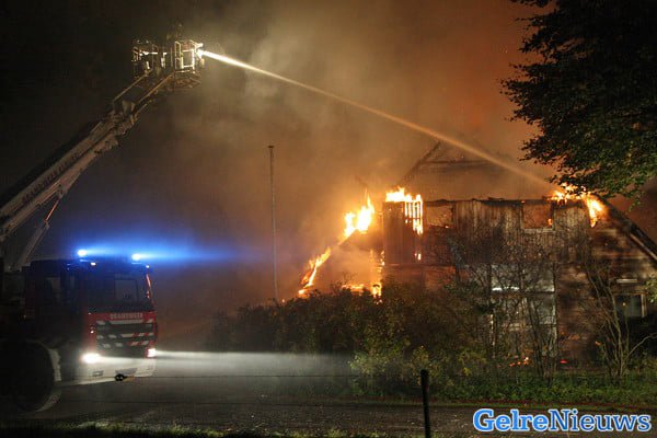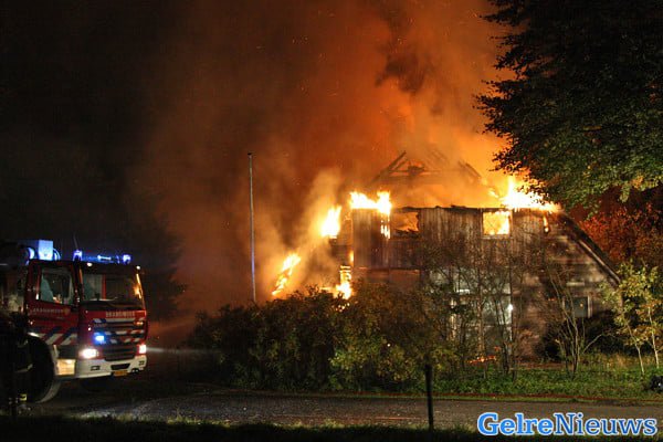 De schuur en het woonhuis werden geheel in de as gelegd.