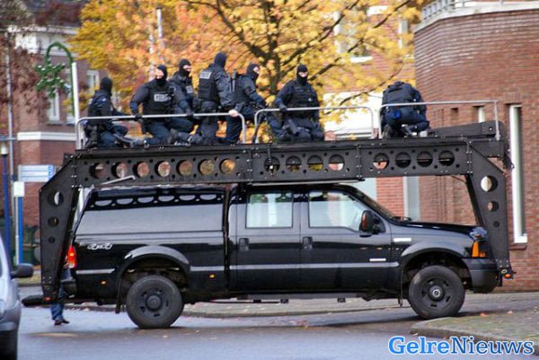 EIBERGEN – Een zwaar bewapend arrestatieteam van de politie heeft maandagochtend 2 november een inval gedaan in een winkelpand in het centrum van Eibergen.
