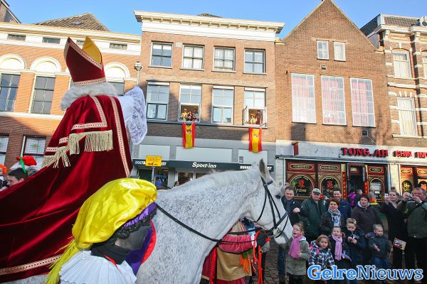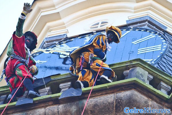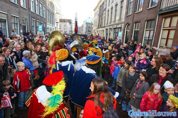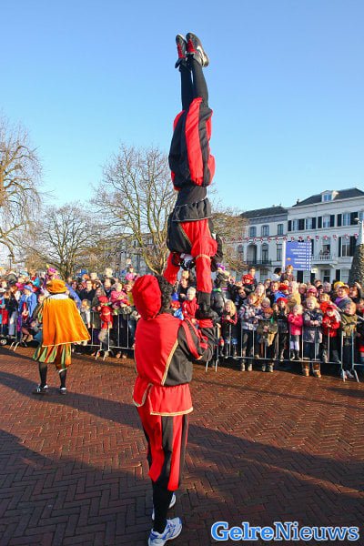 Even na tienen zette Sinterklaas voet aan Zutphense wal. Nadat vele handjes waren geschut en een groot aantal tekeningen in ontvangst was genomen, besteeg de Sint zijn paard. De Sint had al twee klimpieten vooruit gestuurd. Zij moesten de tekenpiet helpen, die zat boven in de wijnhuistoren en durfde niet meer naar beneden. Al abseilend werd de tekenpiet naar beneden gehaald. Met de tekenpiet weer in zijn gezelschap reed de Sint verder door de stad. Op het ’s Gravenhof werd Sinterklaas ontvangen door burgemeester Arnold Gerritsen.