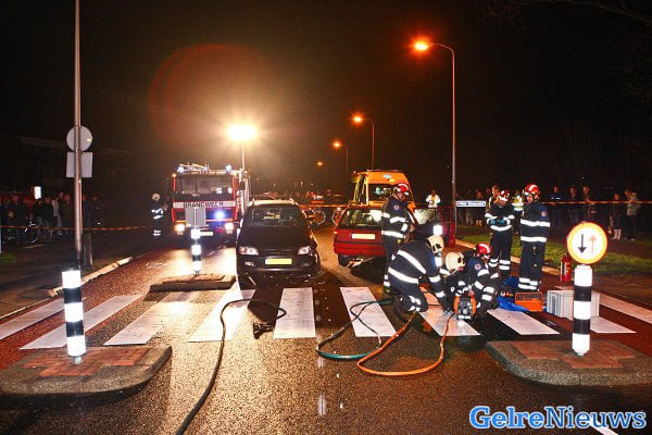 Het ongeval vond rond 18:20 uur plaats. Een bestuurder kreeg bij het passeren van de wegversmalling geen voorrang van een tegemoetkomende 46-jarige automobiliste uit Zutphen. Beiden kwamen met de schrik vrij. Het zoontje (10) en het dochtertje (9) van de automobiliste bleken na controle door het ambulancepersoneel ook ongedeerd. Van het brandweer- en ambulancepersoneel kregen ze een beertje voor de schik. Een gedeelte van de Harenbergweg werd afgezet om het massaal toegestroomde publiek op afstand te houden. Het verkeer moest omrijden.