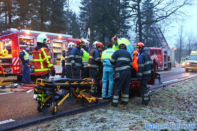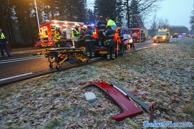 De aanrijding vond rond kort voor half acht plaats. Een automobiliste reed in de richting van Lochem en raakte vermoedelijk op de verkeerde weghelft. Daar kwam de auto frontaal in botsing met een tegenligger. De bestuurster van de tegemoetkomende auto raakte bekneld. De brandweer moest het dak van de auto knippen, waarna de vrouw door de hulpdiensten uit haar benarde positie kon worden bevrijd. De vrouw werd per ambulance naar het ziekenhuis in Deventer overgebracht. De andere automobiliste raakte ook gewond en werd per ambulance naar het ziekenhuis in Zutphen gebracht.