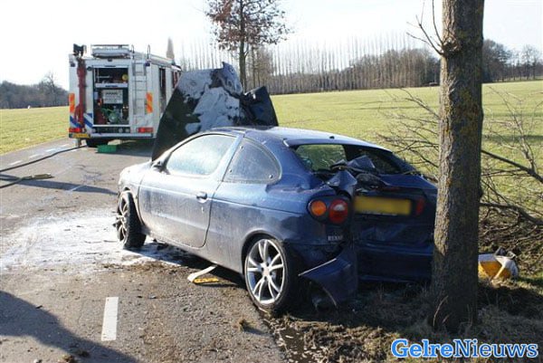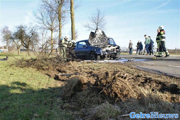 De brandweer kreeg kort na half vier melding over de autobrand binnen. De automobilist moest uitwijken voor een tegemoetkomende auto en verloor daarbij de macht over het stuur. De auto botste tegen een boom. Nadat de bestuurder en zijn passagier de auto hadden verlaten vloog deze in brand. De brandweer kwam ter plaatse en bluste het vuur. De bestuurder en zijn 18-jarige passagier uit Aalten bleken na controle door het ambulancepersoneel ongedeerd.