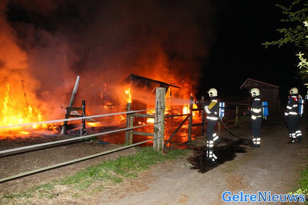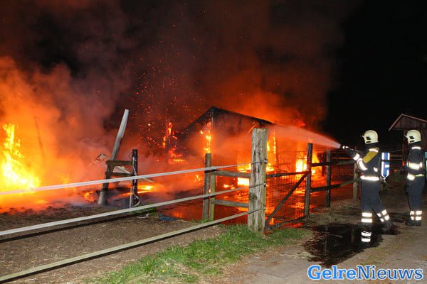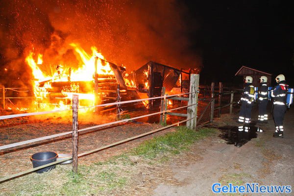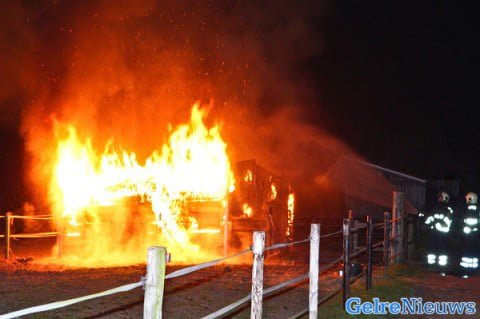 De brand werd kort voor 3 uur ontdekt door passerende politieagenten. De brandweer was snel ter plaatse maar kon niet voorkomen dat de stal volledig in de as werd gelegd.
