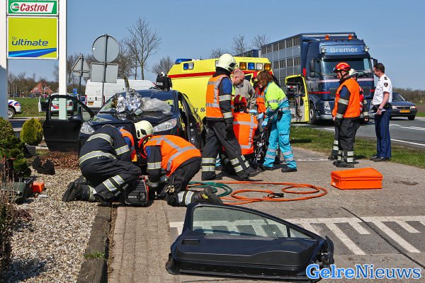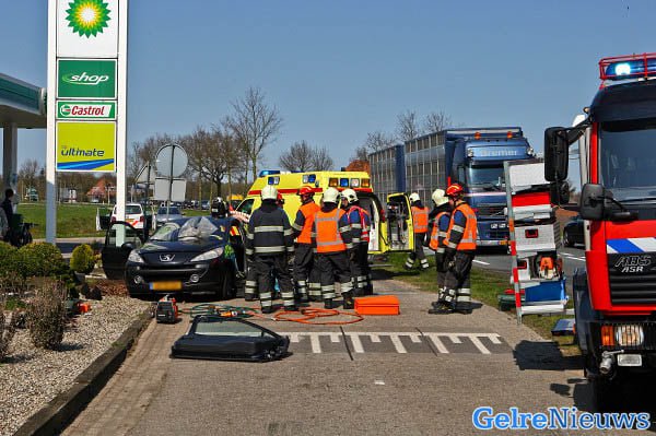 De auto van de vrouw belandde door de klap half op het naast gelegen fietspad en half in de voortuin van de woning bij het tankstation. De vrouw raakte gewond en moest door de hulpdiensten uit haar benarde positie worden bevrijd. Ze werd voor controle per ambulance naar het ziekenhuis in Zutphen overgebracht.
