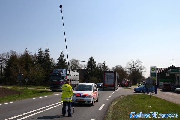 Het ongeluk gebeurde kort na half een. Volgens de politie reed een 30-jarige automobiliste uit Schiedam op de Rengersweg in de richting van Lochem. De vrouw wilde ter hoogte van het tankstation de Beuzelshoek inrijden. De 25-jarige chauffeur uit Blankenham van het varkenstransport had dat te laat in de gaten en boste achterop de auto van de vrouw.
