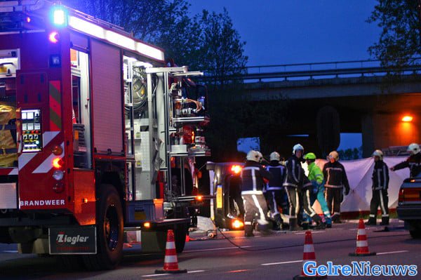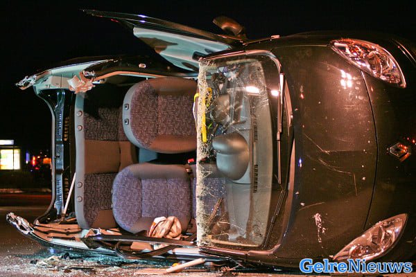 De 71-jarige man reed omstreeks 21:30 uur over de Kayersdijk. Ter hoogte van de afrit met de A1 kwam hij in aanrijding met een auto. Deze auto reed vanaf de afrit van de A1 de Kayersdijk op. Door de aanrijding kwam deze tegemoetkomende auto op zijn kant terecht. De 61-jarige bestuurder werd door de brandweer uit haar auto bevrijd. Zij is met onbekend letsel door een ambulance overgebracht naar het ziekenhuis. De 71-jarige man heeft vermoedelijk het verkeerslicht over het hoofd gezien. De Verkeersongevallenanalyse van de politie is direct een onderzoek gestart naar de toedracht. Beide autoβs zijn weggesleept.