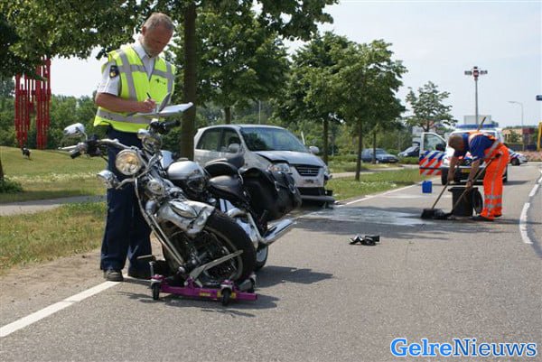 De aanrijding tussen een motorrijder en een auto werd omstreeks 11.55 uur gemeld. Politie- en ambulancepersoneel rukten uit. De motorrijder bleek in ieder geval ernstig beenletsel te hebben opgelopen en is per ambulance naar het ziekenhuis in Nijmegen vervoerd. De automobiliste, een 47-jarige vrouw uit Didam, liep nekletsel op en is naar het ziekenhuis in Zevenaar overgebracht.
