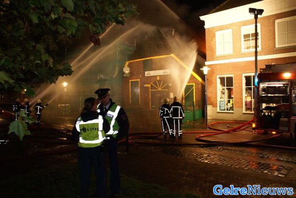 De brand werd rond tien voor elf ontdekt door een voorbijganger. De brandweer rukte met groot materieel uit.  Het was niet meteen duidelijk of er nog iemand in het café aanwezig was. Uit voorzorg kwam een ambulance ter plaatse. Onderzoek wees uit dat er niemand meer binnen was.  Al snel sloegen de vlammen uit het dak. De brandweer van Eibergen kreeg assistentie uit Neede, Winterswijk en Doetinchem. De brandweer kon voorkomen dat het vuur oversloeg naar omliggende panden.