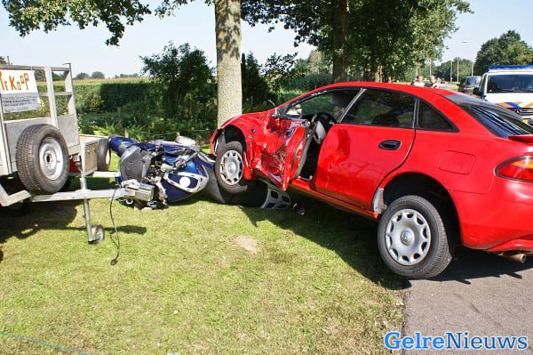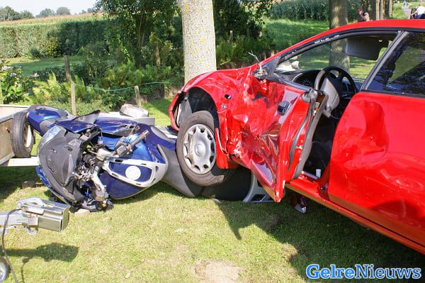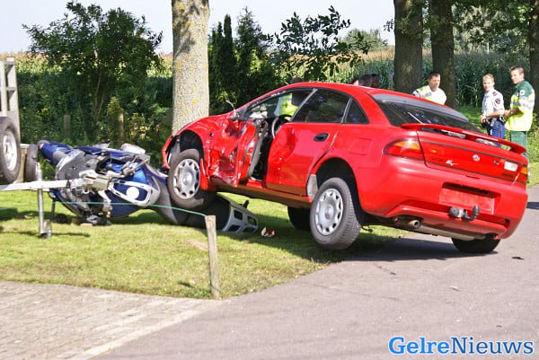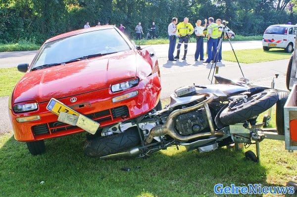 De politie kreeg de melding kort na 15 uur binnen. De bestuurder van de auto wilde afslaan. De motorrijder had dat te laat in de gaten en kon een aanrijding niet meer voorkomen. De motor kwam daarbij onder de auto terecht. De twee inzittenden van de auto raakten gewond. Zij werden per ambulance naar het ziekenhuis gebracht. De motorrijder hield ‘slechts’ een pijnlijke schouder over aan de aanrijding. De dienst verkeersongevallen analyse van de politie heeft een onderzoek ingesteld naar de toedracht van de aanrijding.
