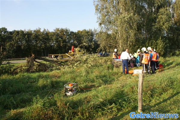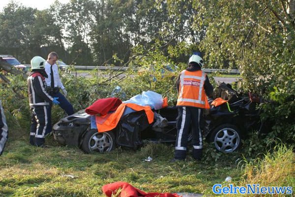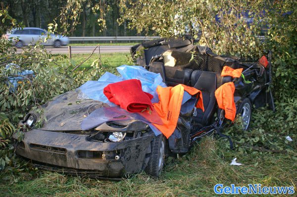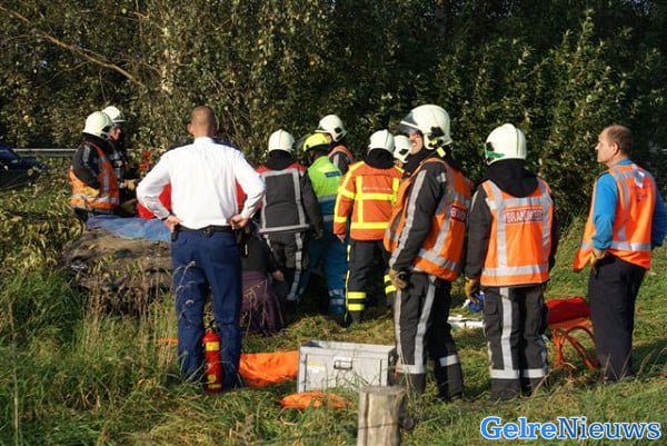 Het ongeval gebeurde kort na 17 uur. De automobilist raakte door een nog onbekende oorzaak de macht over het stuur kwijt. De auto schoot de berm in, vloog over een sloot, ramde twee bomen en kwam vervolgens in een weiland tot stilstand. De automobilist raakte gewond en zat bekneld in het wrak. Hulpdiensten hebben de man uit zijn benarde positie bevrijd. Hij werd vervolgens met onbekend letsel per ambulance naar het ziekenhuis gebracht.