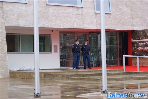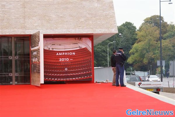 De politie heeft inmiddels in de nabijheid een commandocentrale ingericht. ME-busjes staan al geparkeerd voor de schouwburg, waar rond negen uur de rode loper werd uitgerold. Een schilder verrichtte vanmorgen nog de laatste hand aan de ingang.