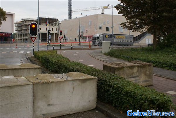 Diverse wegen rondom het nieuwe Amphion zijn vanwege de strenge veiligheidsmaatregelen, doormiddel van betonblokken, afgesloten.