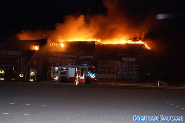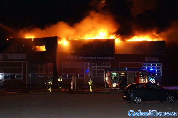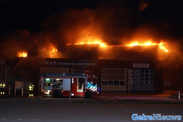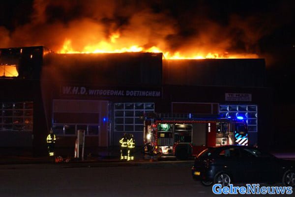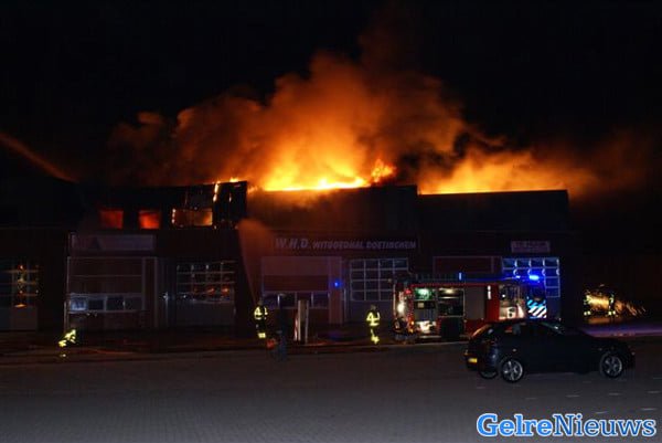 DOETINCHEM – Een uitslaande brand heeft maandagavond 6 september een groot deel van een bedrijfsgebouw in Doetinchem verwoest. Niemand raakte gewond. De oorzaak van de brand is nog niet bekend.