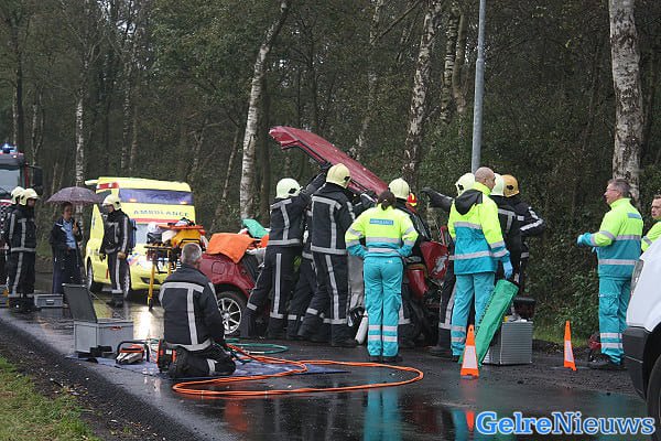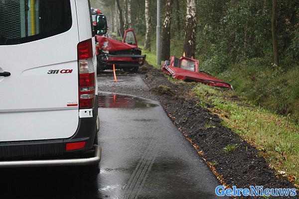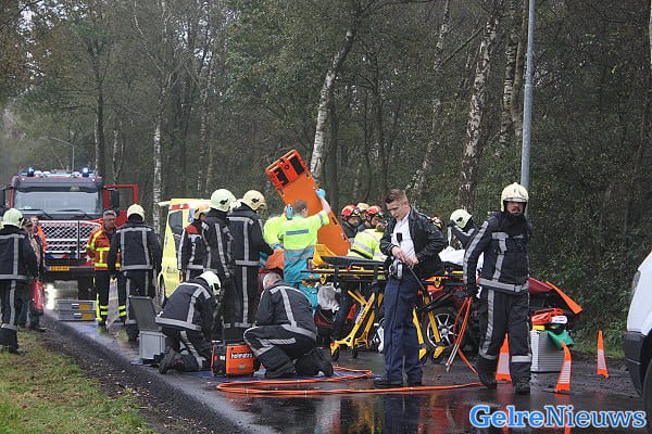 Het ongeval vond rond tien voor tien plaats. Een 35-jarige automobilist uit Ermelo reed over de Garderenseweg in de richting van zijn woonplaats. De bestuurder verloor de macht over het stuur toen hij een taxibusje wilde inhalen. De auto raakte in de berm en botste tegen een boom. De automobilist en zijn 32 jarige vrouw raakten gewond. De hulpdiensten hebben het hen auto de auto moeten bevrijden. Beiden werden per ambulance naar het ziekenhuis gebracht.