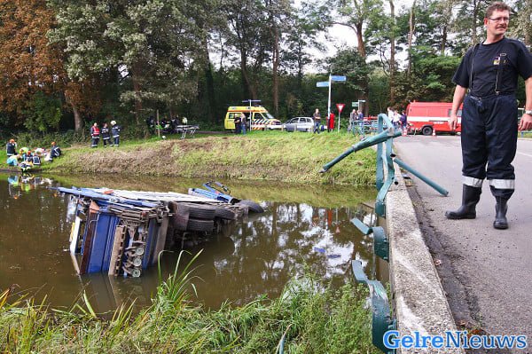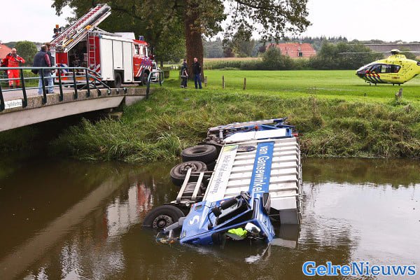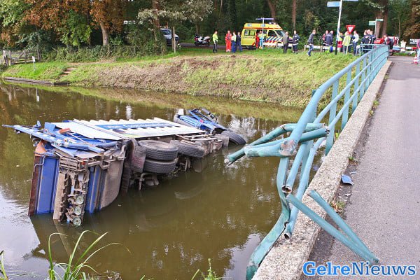 ALMEN – Een chauffeur van een vuilniswagen is vrijdagmiddag 24 september ernstig gewond geraakt toen zijn vuilniswagen in Almen door nog onbekende oorzaak van de weg raakte, op een brug. De vuilniswagen is door de afrastering van de brug gereden en enkele meters lager in het water terecht gekomen. Een collega van de chauffeur die naast hem zat raakte lichtgewond.