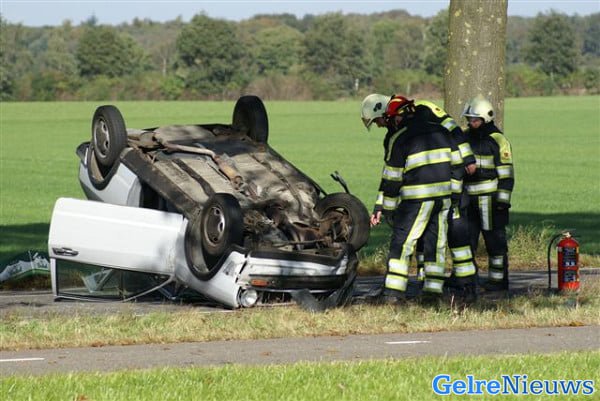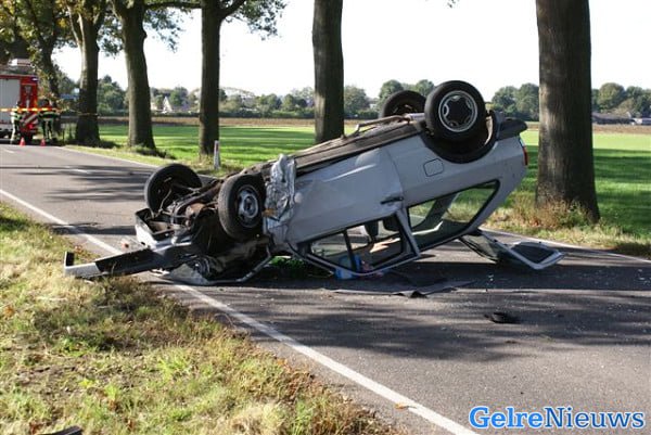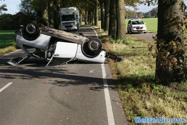 Het ongeval vond kort voor half een plaats. De man reed in de richting van Aalten en raakte door een nog onbekende oorzaak in de berm. Vervolgens botste de auto op een boom en kwam op de kop op het wegdek terecht. Gewaarschuwde hulpdiensten hebben de man uit zijn auto bevrijd. De man werd met lichte verwondingen naar het ziekenhuis gebracht. De zwaar beschadigde auto moest worden afgesleept.