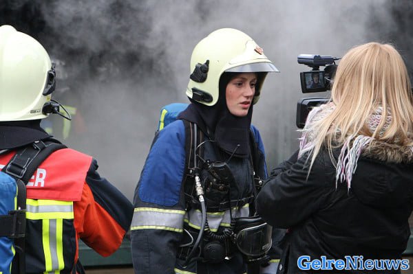Presentatrice Eva Bartels probeert voor haar programma verschillende beroepen uit. Waaronder dus ook brandweervrouw.