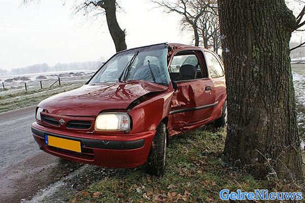 Het ongeval vond rond half tien plaats. Vermoedelijk raakte de auto door de gladheid in de slip en botste tegen een boom. Hulpdiensten kwamen ter plaatse. De vrouw was zelf al uit de auto gestapt, ze werd met onbekende verwondingen per ambulance naar het ziekenhuis gebracht. Haar viervoeter die ook in de auto zat bleef ongedeerd. De hond werd door de politie meegenomen.