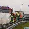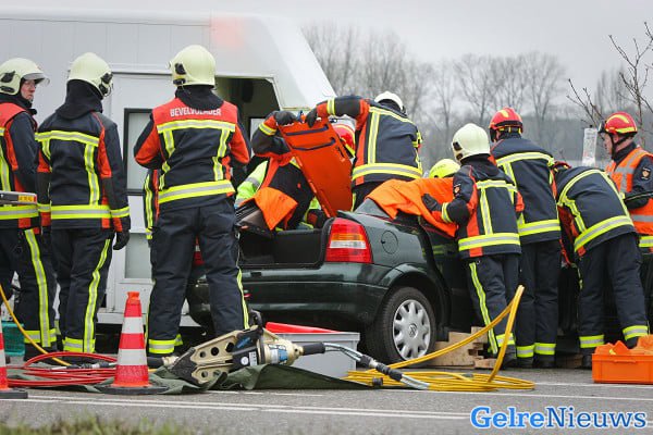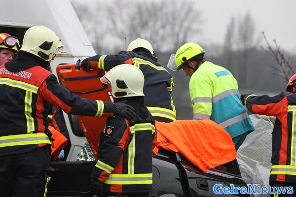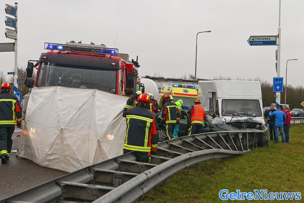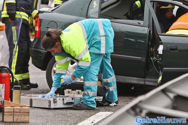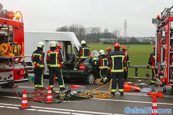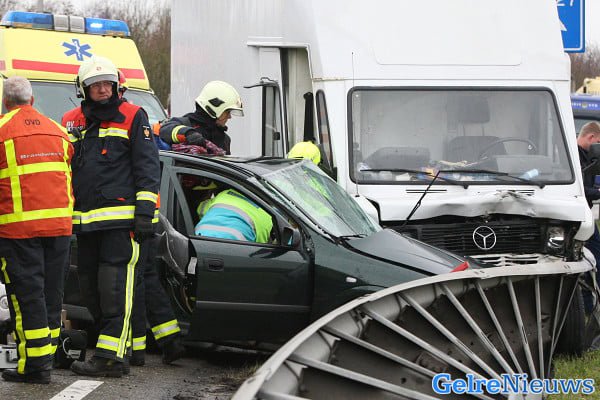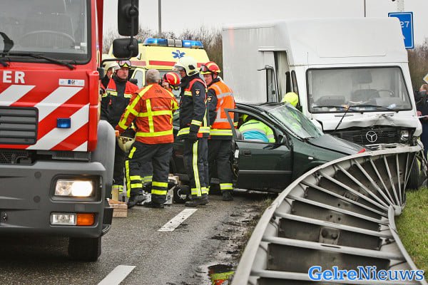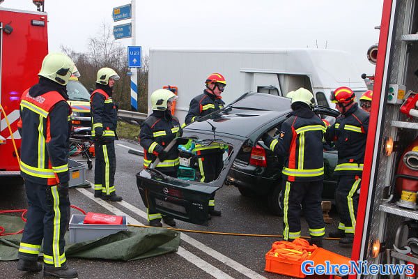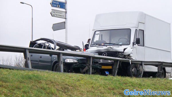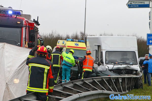 Het ongeval gebeurde kort voor half drie ter hoogte van afslag naar de Larenseweg. Door een nog onbekende oorzaak kwam de automobiliste in botsing met een bestelbus. De vrouw raakte gewond en moest door de gewaarschuwde hulpdiensten uit haar auto worden bevrijd. Het slachtoffer werd met onbekende verwondingen per ambulance naar het ziekenhuis gebracht. De bestuurder van de bestelbus bleef ongedeerd. De politie heeft een onderzoek ingesteld naar de exacte toedracht van het ongeval.