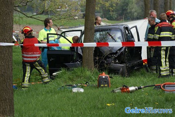 De inzittenden van de andere auto brachten het er minder goed vanaf. De auto kwam tegen een boom tot stilstand. De inzittenden, de vrouwelijke bestuurster en haar passagier, moesten door de gewaarschuwde hulpdiensten worden bevrijd. Beiden werden met onbekende verwondingen per ambulance naar het ziekenhuis gebracht.