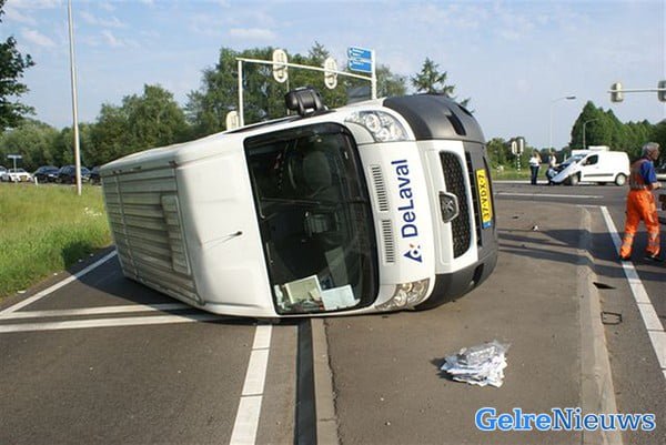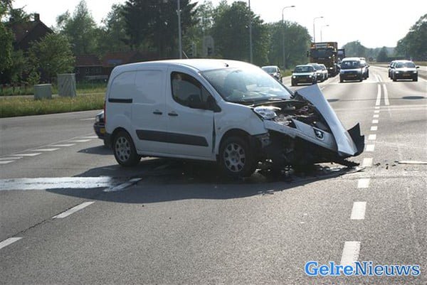 Het ongeval gebeurde kort na half zes. Het busje kwam in botsing met een bestelauto en kantelde. De bestuurders kwamen met de schrik vrij. Beide voertuigen moesten worden afgesleept. Het verkeer ondervond hinder van het ongeval.